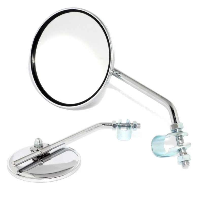 Rétroviseur rond chromé ; Réversible, peut-être utilisé à droite ou à gauche ;