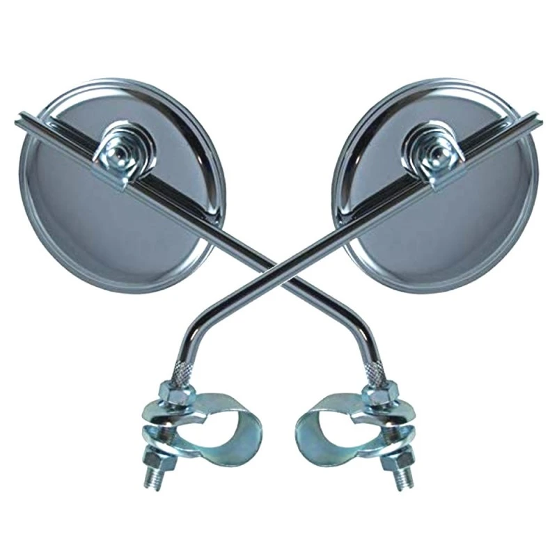 2x Rétroviseur rond chromé ; Réversible, peut-être utilisé à droite ou à gauche ;