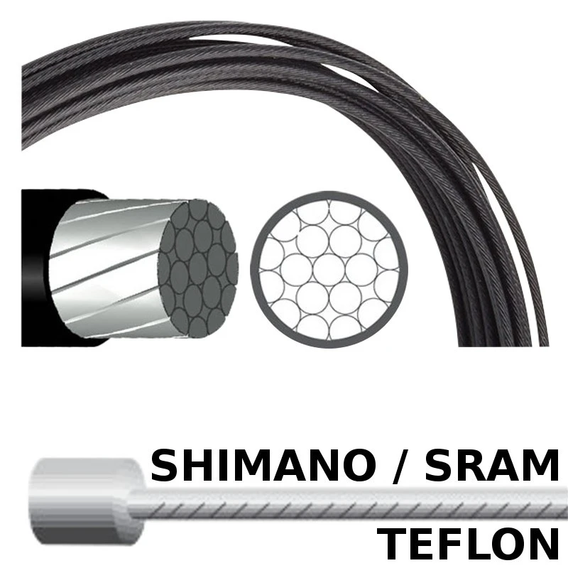 Câble de dérailleur universel. La surface est recouverte d’une couche PTFE qui diminue les frottements.