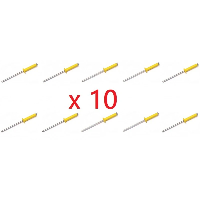 Kit de 10 rivets jaunes 4×16 pour plaque d’immatriculation ;