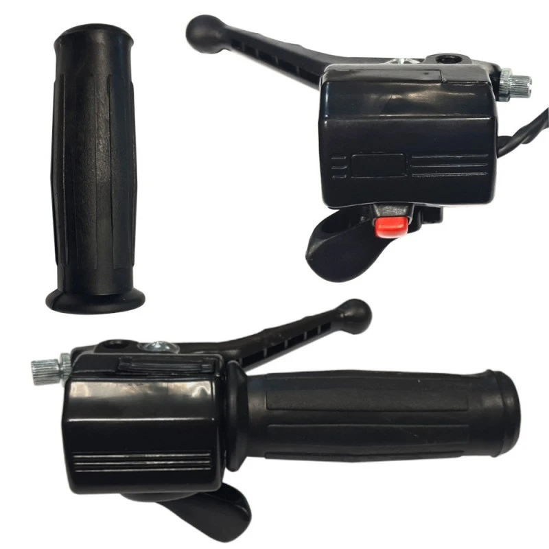 Kit complet poignée et levier, droite (gaz/accélérateur) et gauche (avec commodo électrique) ;